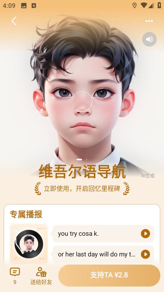 3、找到維語語音包后點擊進入語音包詳情頁面,在詳情頁面中你可以查看語音包的專屬播報內容,如果確定使用該維語語音包,點擊相應按鈕即可完成設置。