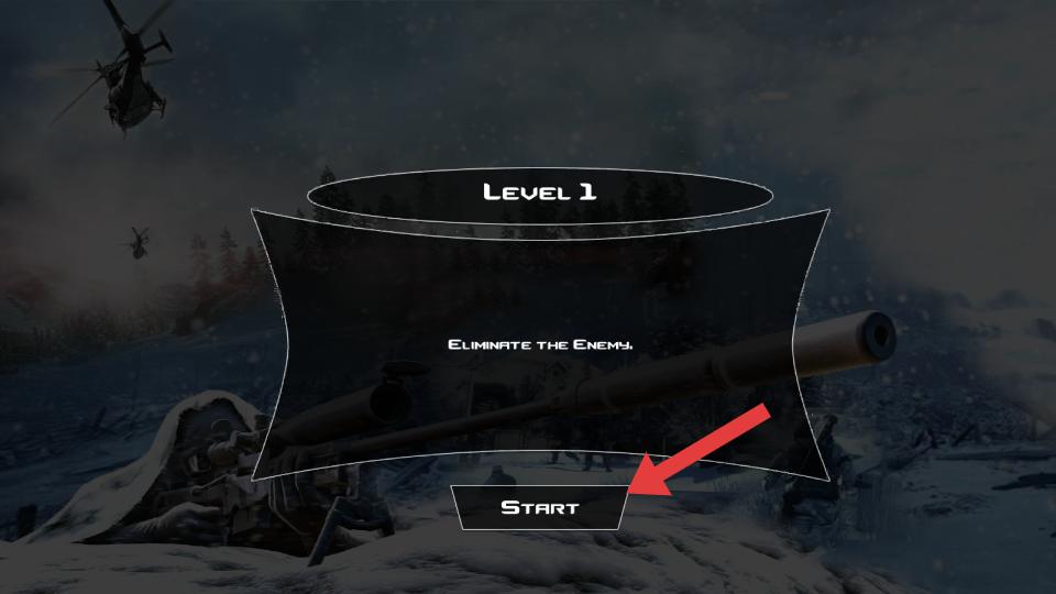 4、在關(guān)卡1界面,任務(wù)是消滅敵人,點(diǎn)擊START,開始狙擊敵人,完成關(guān)卡1的任務(wù)。