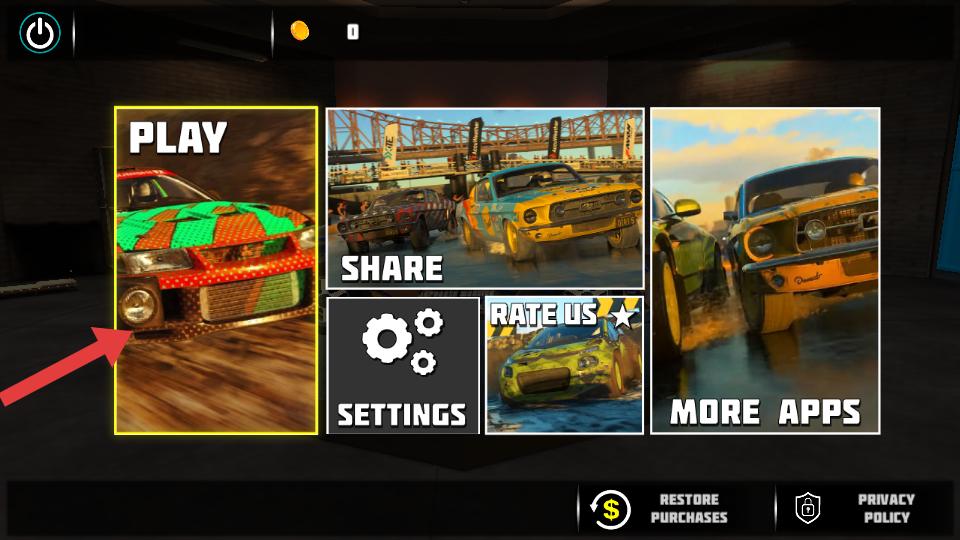 1、游戲主界面有PLAY,SHARE等選項(xiàng),點(diǎn)擊PLAY可進(jìn)入游戲,也能通過SETTINGS調(diào)整設(shè)置,SHARE分享游戲,準(zhǔn)備開啟賽車之旅。