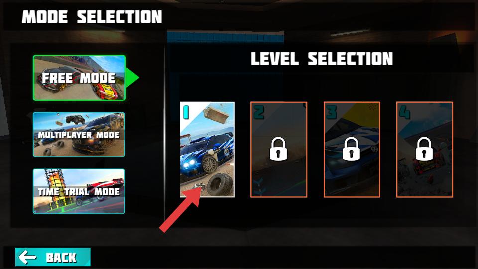 3、進(jìn)入模式選擇界面,有自由模式,多人模式等,選好模式后,到關(guān)卡選擇中選可玩的關(guān)卡,進(jìn)入對(duì)應(yīng)賽車場(chǎng)景。