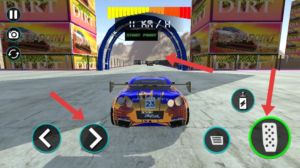 4、賽車場(chǎng)景中,通過左右箭頭按鈕控制方向,還有加速等按鈕,操控賽車在賽道行駛,完成賽車挑戰(zhàn)。