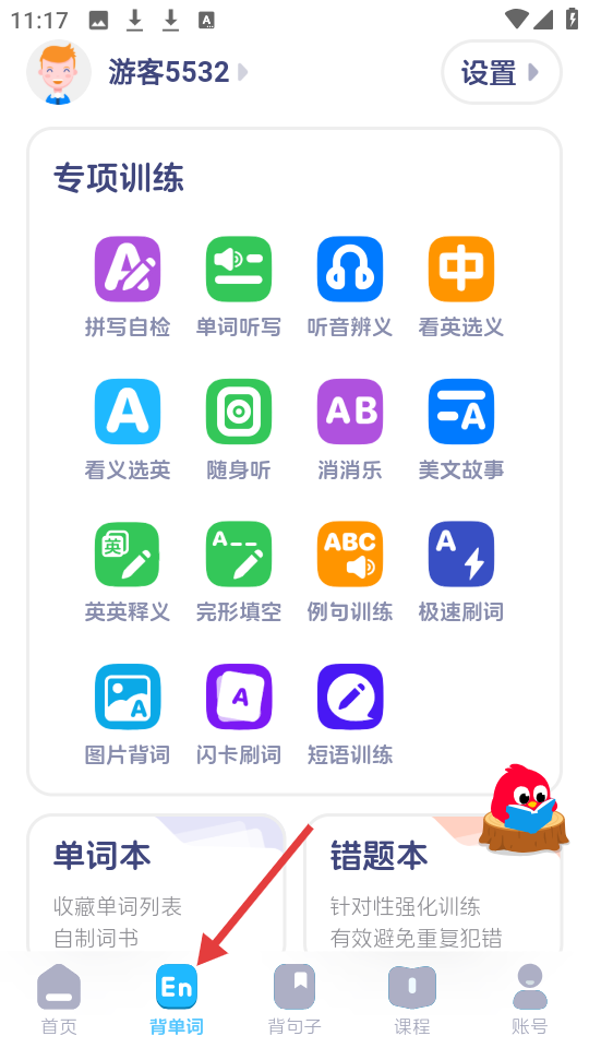 3、背單詞板塊涵蓋拼寫自檢、單詞聽寫等專項(xiàng)訓(xùn)練,還有單詞本、錯(cuò)題本輔助,能針對(duì)性強(qiáng)化英語(yǔ)學(xué)習(xí)提升學(xué)習(xí)效率。