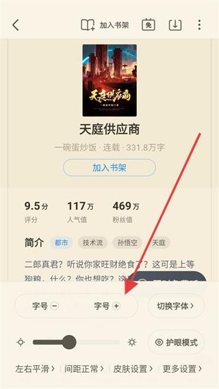 4、在小說詳情頁面可調(diào)整字號、切換字體等,設(shè)置適合的閱讀樣式,然后點擊加入書架,方便后續(xù)閱讀,同時還能參與福利活動獲取獎勵。