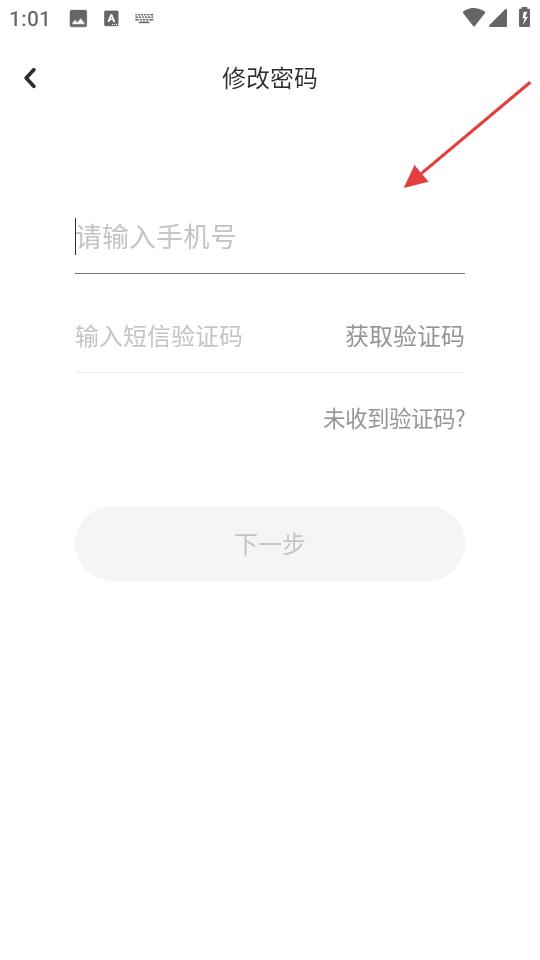 3、進(jìn)入修改密碼頁,填手機(jī)號(hào),獲取、輸驗(yàn)證碼,點(diǎn)下一步,完成密碼修改流程。