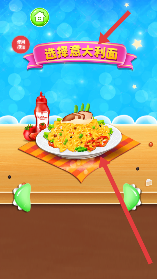 2、接著進(jìn)入選擇意大利面環(huán)節(jié),界面呈現(xiàn)裝飾好的意大利面,點(diǎn)擊盤中美食,選定制作的面食種類。