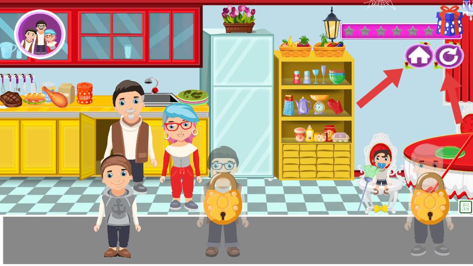 4、在廚房等不同功能房間,有冰箱,櫥柜等設(shè)施,可和其他人物一起在房間里活動(dòng),也能通過相關(guān)按鈕返回或重新布置。