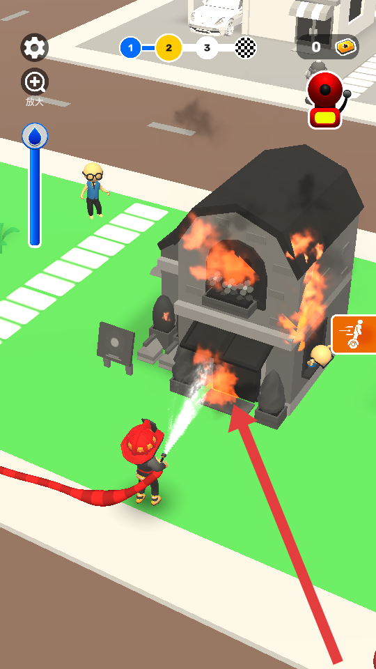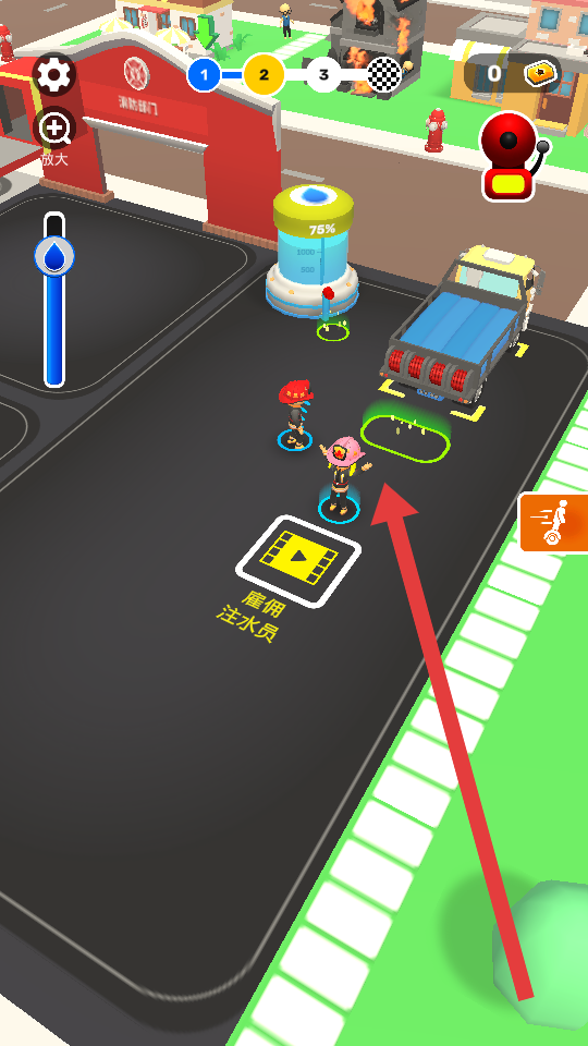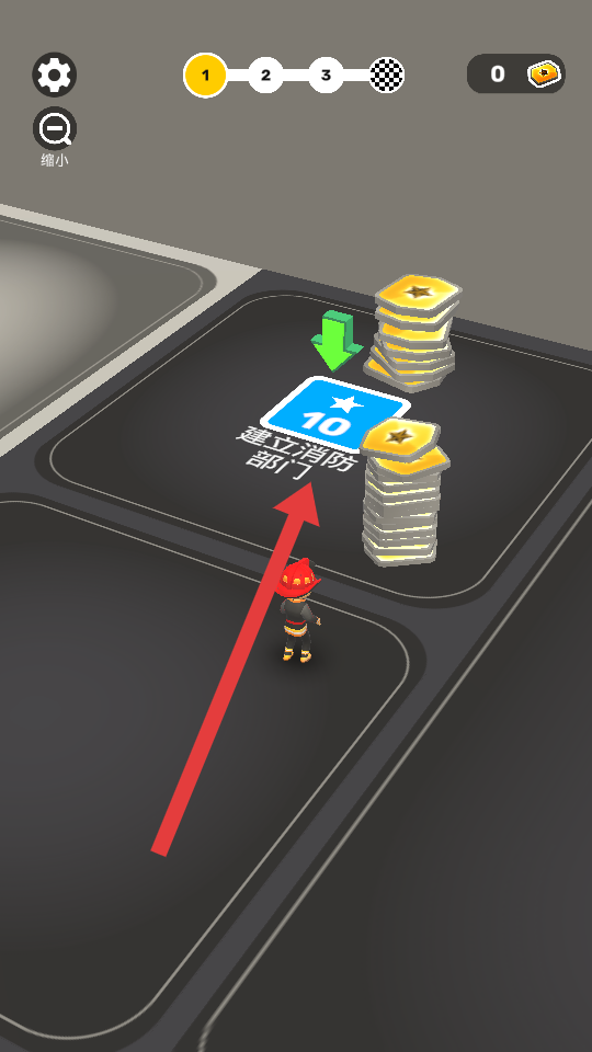 1、進(jìn)入消防模擬游戲,操控消防員靠近建立消防部門標(biāo)識(shí)區(qū)域,依據(jù)箭頭指引完成消防部門搭建開啟消防任務(wù)。