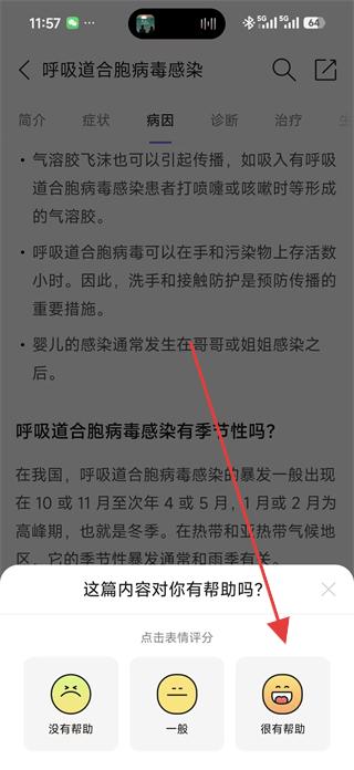4、在內(nèi)容末尾可參與表情評分,選擇沒有幫助、一般、很有幫助等選項,反饋內(nèi)容對自己的幫助程度,參與軟件的互動優(yōu)化。