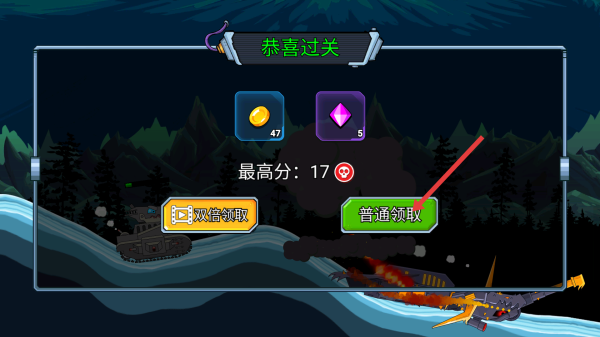 4、成功擊敗所有敵人后,出現(xiàn)恭喜過(guò)關(guān)界面,可選擇普通領(lǐng)取獲取金幣、鉆石等獎(jiǎng)勵(lì)也可選擇雙倍領(lǐng)取。