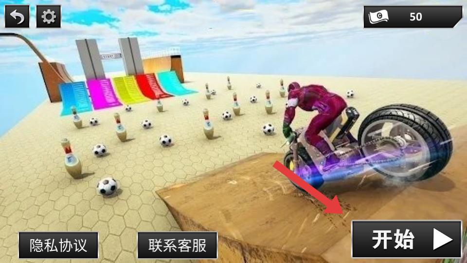 1、游戲初始界面有特技場景,點(diǎn)擊開始,進(jìn)入模式選擇環(huán)節(jié),開啟特技駕駛的挑戰(zhàn)之旅。