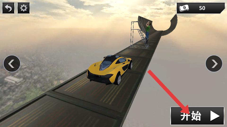 4、進(jìn)入特技駕駛場景,有各種汽車等,點(diǎn)擊開始,操控汽車在特技軌道上行駛,完成特技挑戰(zhàn)任務(wù)。