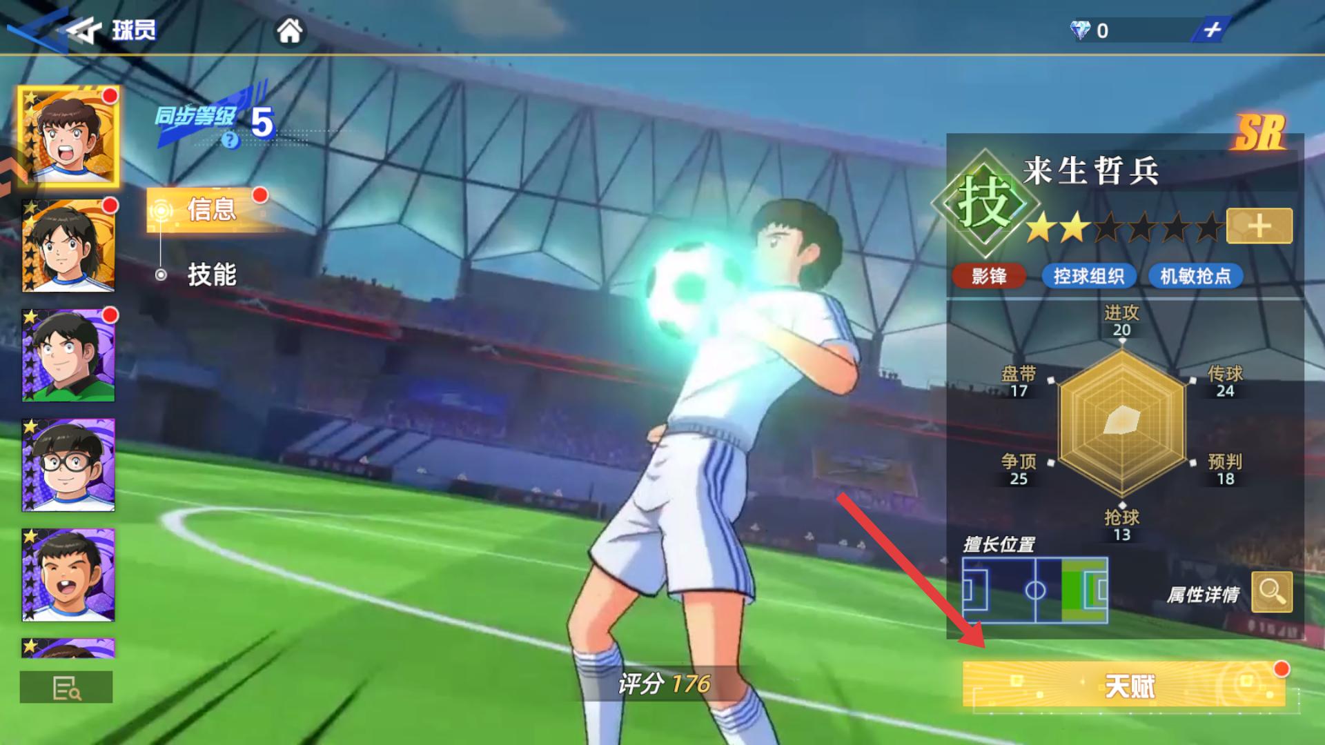 3、在球員界面,選擇具體球員,點擊右下角天賦按鈕,能進入該球員的天賦系統(tǒng),進行天賦激活等操作。