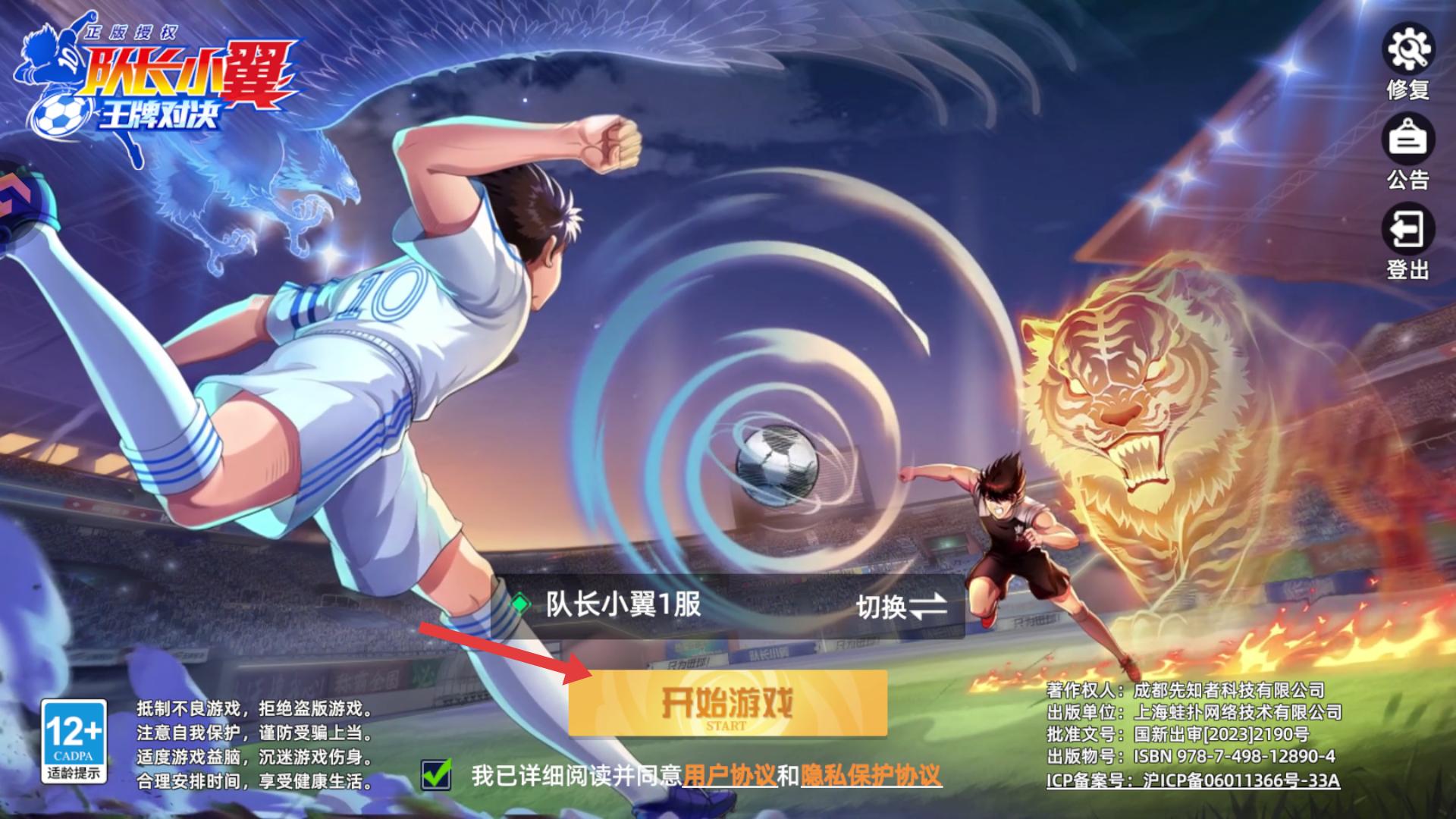 1、游戲登錄界面,勾選已詳細閱讀并同意用戶協(xié)議和隱私保護協(xié)議后,點擊開始游戲按鈕,即可進入游戲主界面。