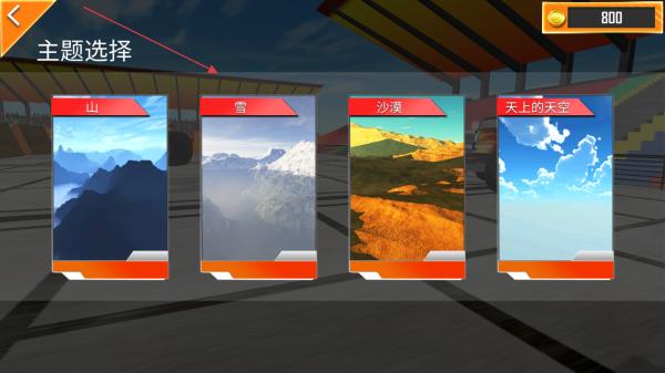 2、在該界面中有山、雪、沙漠、天上的天空等不同主題可供選擇,點(diǎn)擊心儀的主題,進(jìn)入對(duì)應(yīng)的游戲賽道。