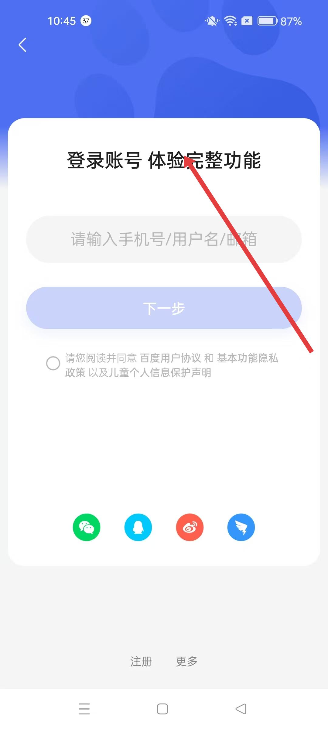 2、登錄賬號(hào)頁(yè)面,輸入手機(jī)號(hào)、用戶(hù)名、郵箱后點(diǎn)擊下一步,進(jìn)入短信驗(yàn)證碼登錄頁(yè)面。