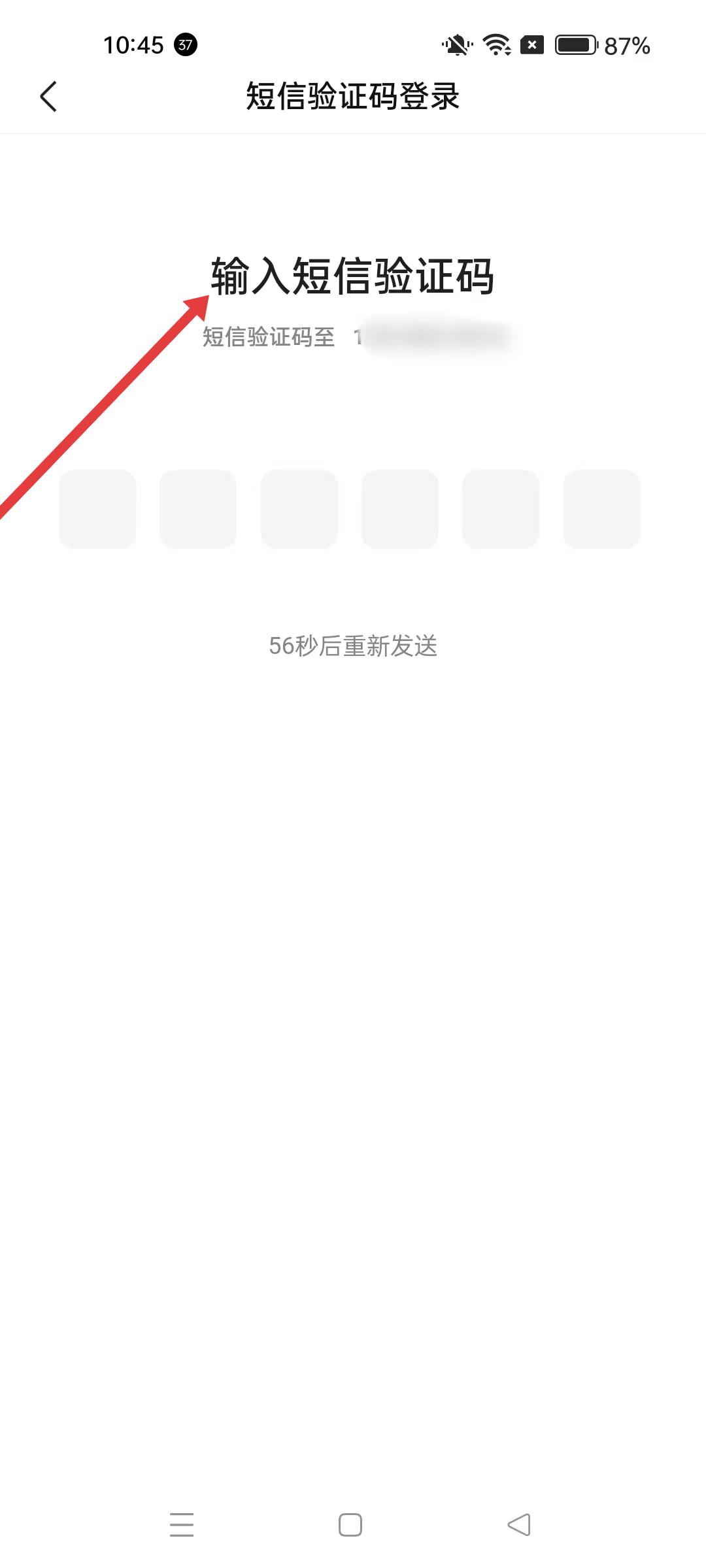 3、短信驗(yàn)證碼登錄頁(yè)面,輸入收到的短信驗(yàn)證碼,完成賬號(hào)登錄操作。