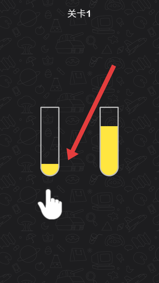 1、在關(guān)卡1點(diǎn)擊裝有少量液體的試管,將液體倒入另一個(gè)試管,使液體集中完成本關(guān)操作。