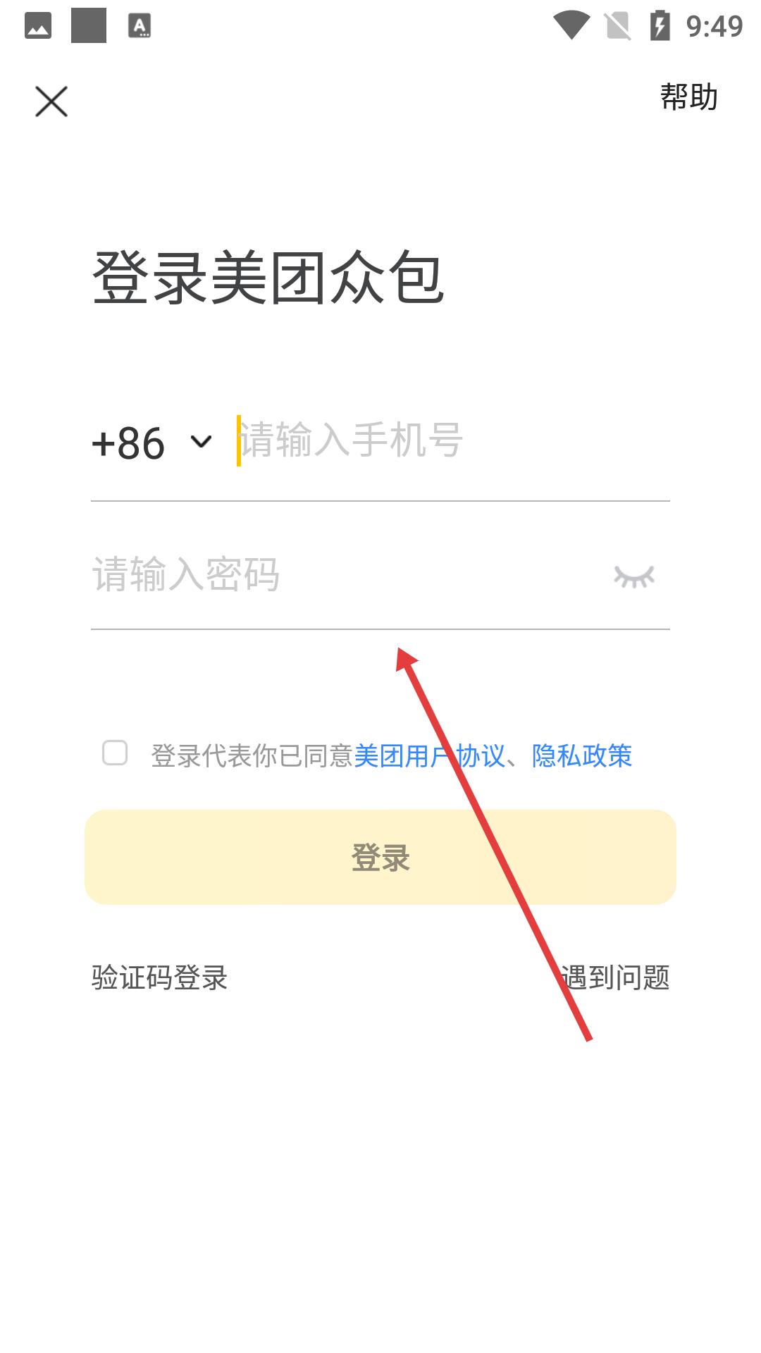 2、登錄美團眾包,也可選擇密碼登錄,輸入對應(yīng)的密碼即可完成登錄操作,登錄需同意相關(guān)協(xié)議。