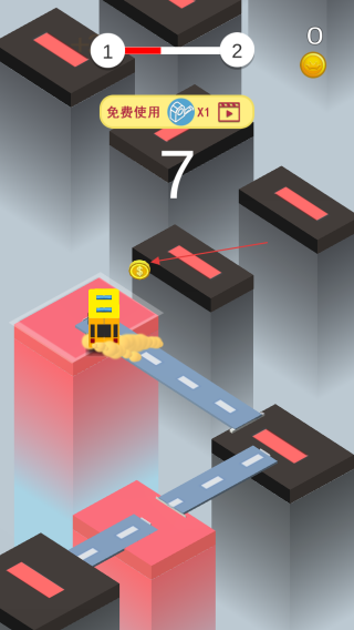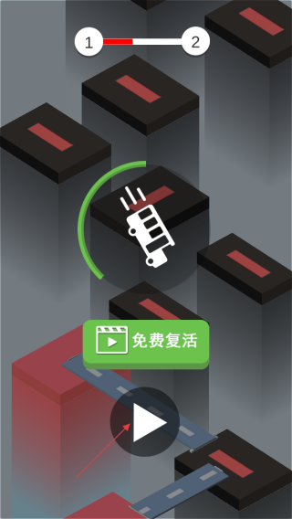 4、如果賽車不慎掉落,可點擊免費復活按鈕重新搭建道路,操控賽車繼續(xù)前進,挑戰(zhàn)更遠的行駛距離和更多的金幣收集量。