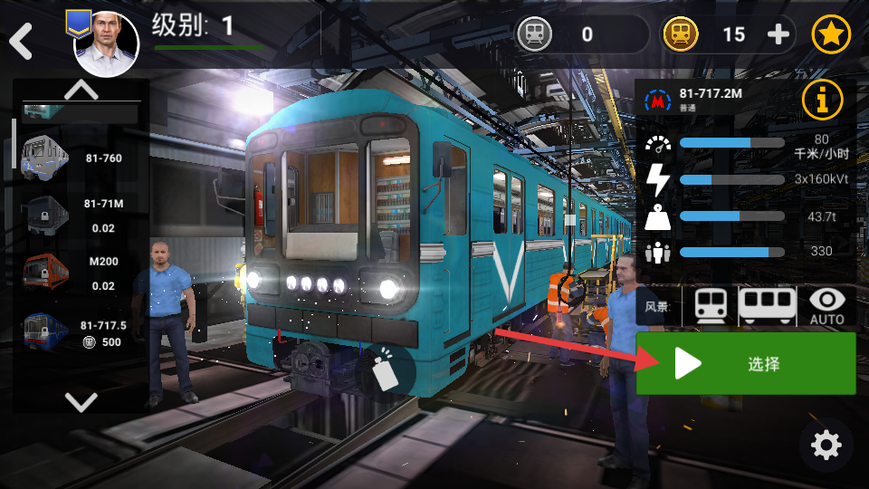 1、開(kāi)啟游戲先在列車選擇界面挑選列車,查看列車參數(shù)確認(rèn)合適后點(diǎn)擊選擇,即可選定要駕駛的列車。