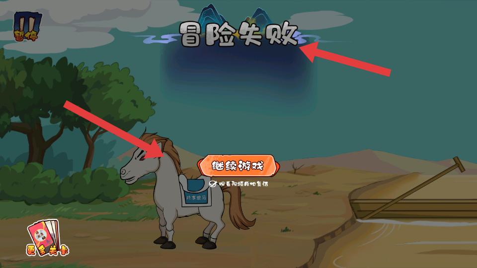 4、要是冒險失敗,會出現(xiàn)顯示冒險失敗的界面,此時點擊繼續(xù)游戲,就能重新開始挑戰(zhàn),繼續(xù)抓妖精。