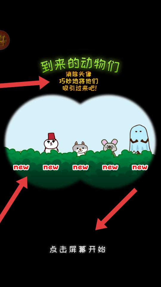4、進(jìn)入消除環(huán)節(jié),會有到來的動物們提示,點擊屏幕開始,通過消除頭像吸引動物。