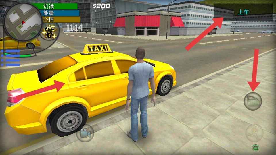 1、進(jìn)入游戲,能看到出租車(chē)等車(chē)輛,可點(diǎn)擊上車(chē),駕駛車(chē)輛到城市中行駛,開(kāi)啟模擬駕駛體驗(yàn)。