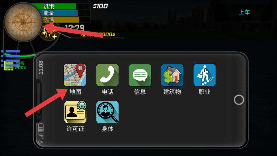 4、游戲中還有手機(jī)界面,可查看地圖,電話(huà)等功能,借助地圖等功能,更好地到游戲世界中行動(dòng)。