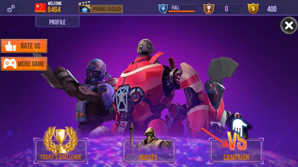 2、游戲主界面有今日挑戰(zhàn)、機(jī)器人、戰(zhàn)役等選項(xiàng),可根據(jù)需求選擇,若想體驗(yàn)劇情選戰(zhàn)役合適。