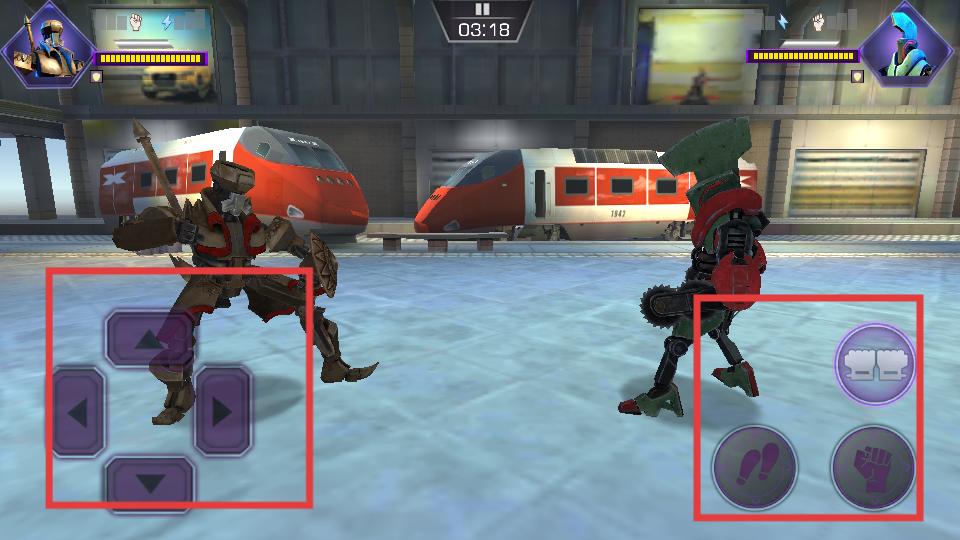 4、戰(zhàn)斗時(shí)左側(cè)方向鍵控制機(jī)器人移動(dòng),右側(cè)按鈕分別對(duì)應(yīng)不同攻擊動(dòng)作,玩家要靈活操作,躲避對(duì)手攻擊并發(fā)起有效進(jìn)攻。