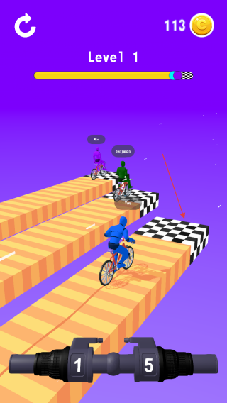 3、游戲賽道上設(shè)有終點標(biāo)志,在超越對手的同時規(guī)劃好變速策略,讓單車以最佳狀態(tài)沖向終點,完成關(guān)卡挑戰(zhàn)。