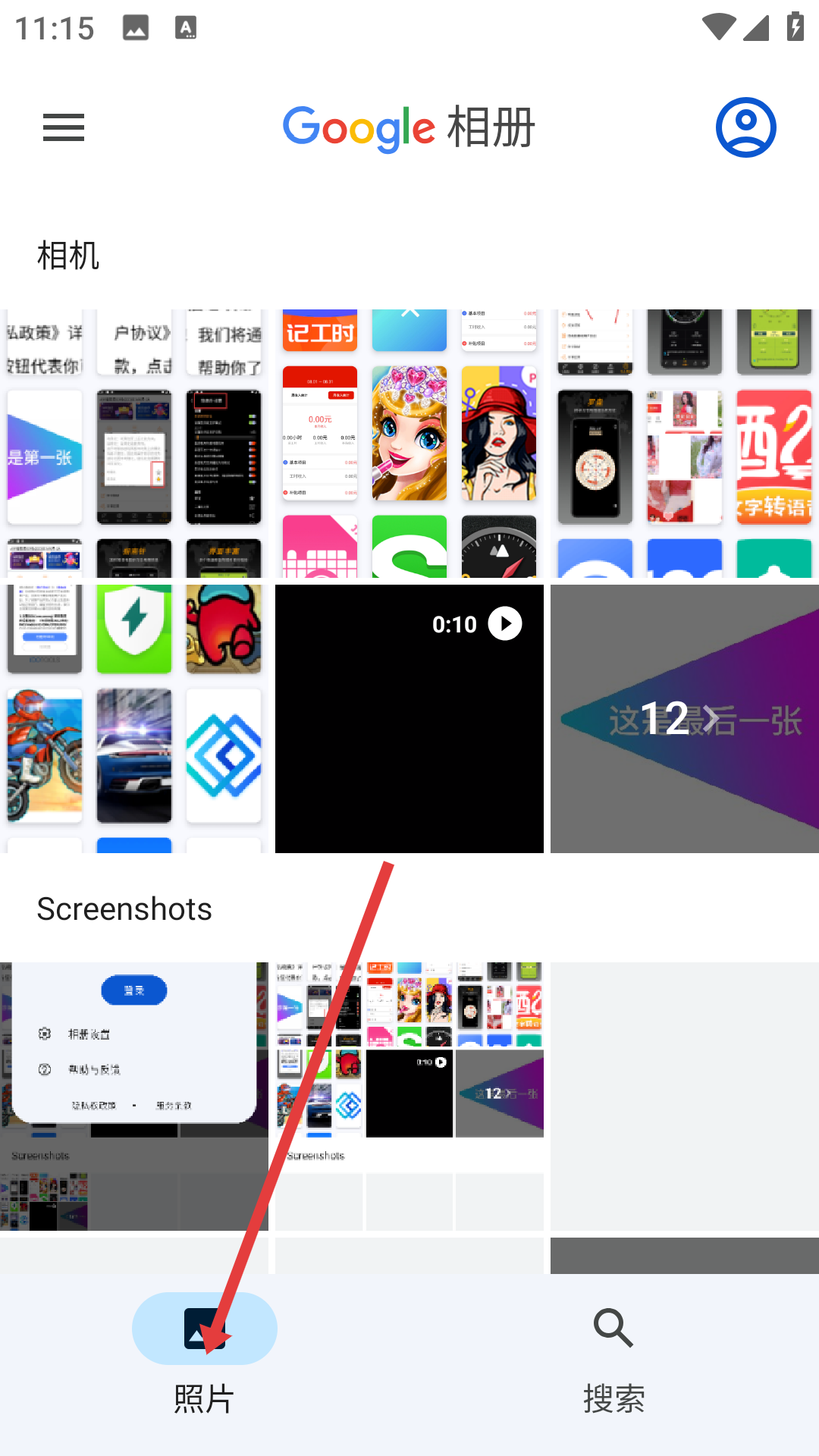 1、打開(kāi)谷歌相冊(cè)點(diǎn)擊底部照片,進(jìn)入照片瀏覽界面,這里按時(shí)間等維度展示相機(jī)拍攝、截圖等各類圖片視頻,方便快速瀏覽、查找已存儲(chǔ)的影像內(nèi)容。