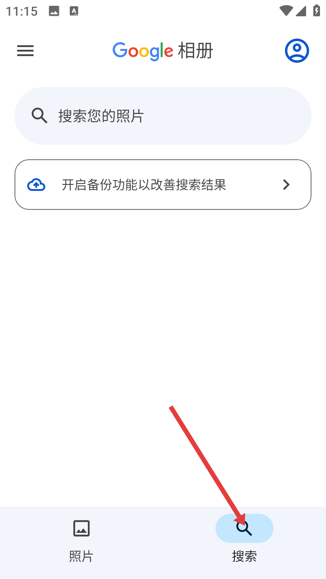 2、切換到底部搜索頁(yè)面出現(xiàn)搜索欄,輸入關(guān)鍵詞,像人物、地點(diǎn)、事件相關(guān)詞匯,可快速定位對(duì)應(yīng)照片,還能開(kāi)啟備份功能,輕松找到想要的特定影像資料。