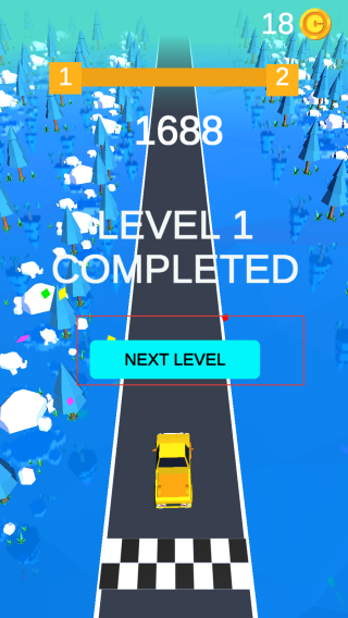 4、成功通過(guò)當(dāng)前公路路段后,會(huì)顯示LEVEL1COMPLETED等通關(guān)提示,點(diǎn)擊NEXT LEVEL按鈕,進(jìn)入下一個(gè)關(guān)卡。