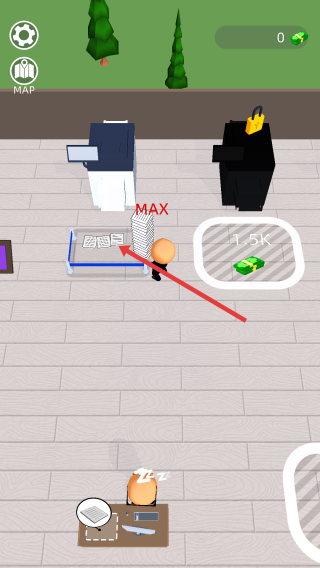 1、進入游戲辦公室場景中,操控角色將物品搬運到標有MAX的區(qū)域,完成物品的初步存放,開啟經(jīng)營流程。