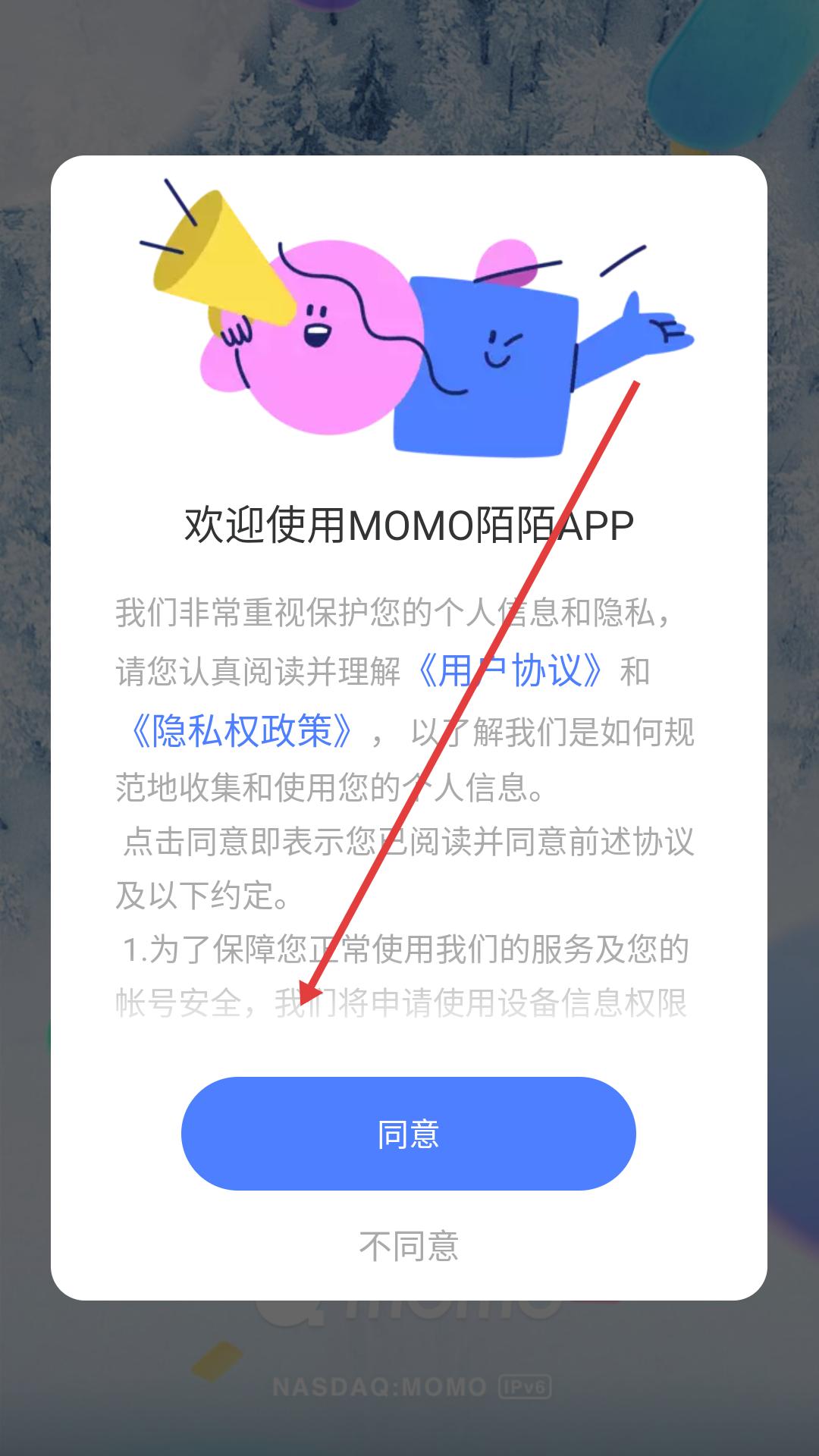 1、下載安裝完成后進(jìn)入,需在用戶協(xié)議和隱私政策界面點(diǎn)擊同意,接受相關(guān)條款后才能進(jìn)入應(yīng)用。