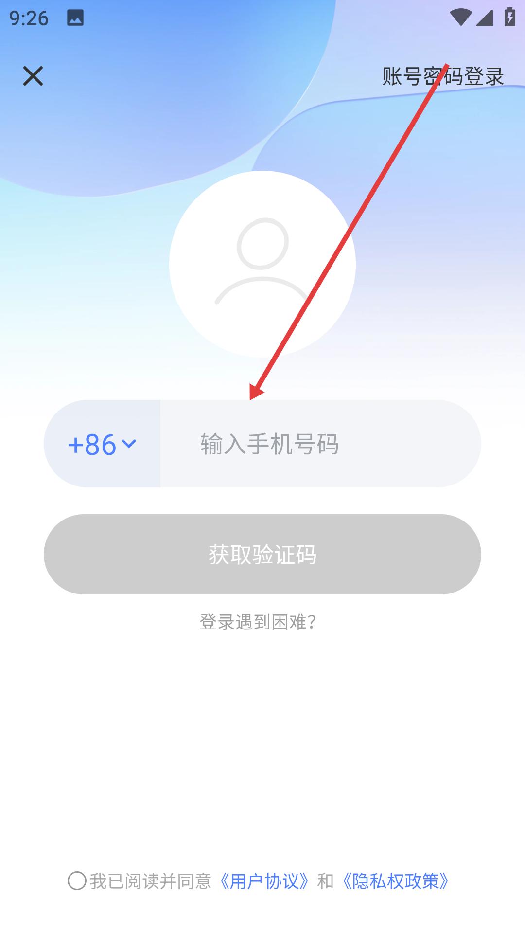 2、進(jìn)入登錄界面,可選擇手機(jī)號登錄,輸入手機(jī)號后獲取驗(yàn)證碼,也可選擇賬號密碼登錄,輸入對應(yīng)信息即可。