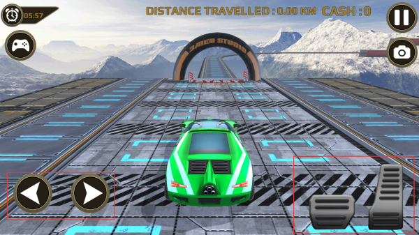3、通過屏幕左下角的左右方向虛擬按鈕控制汽車的轉(zhuǎn)向,屏幕右下角的虛擬踏板按鈕分別控制汽車的加速和剎車。