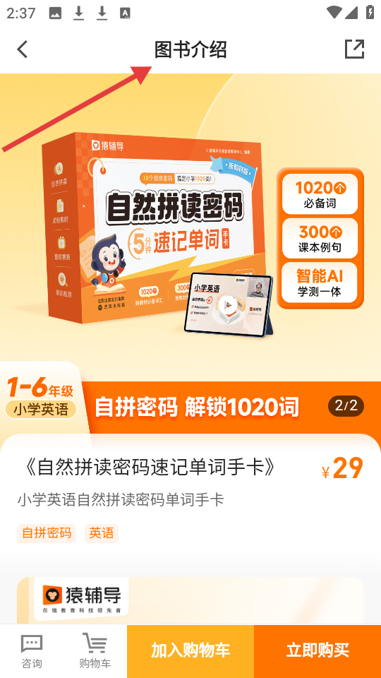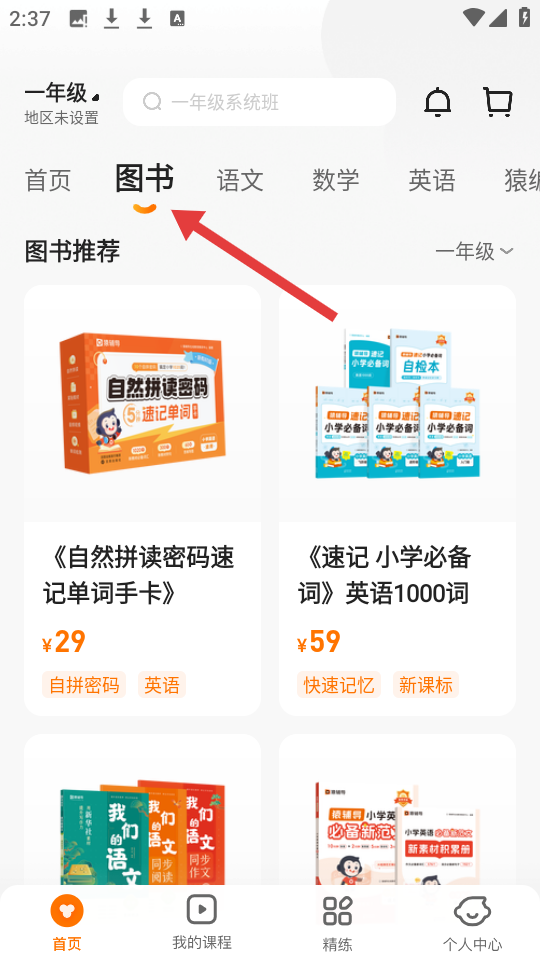 2、圖書頁面專注一年級,推自然拼讀密碼速記單詞手卡等書,覆蓋英語、語文領域助孩子開啟學習新篇選合適學習資料。
