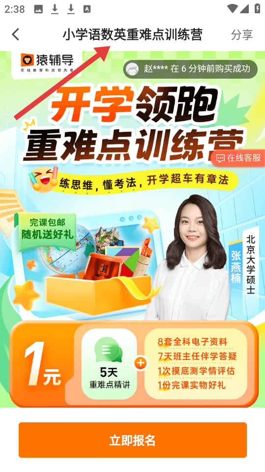 4、小學語數(shù)英重難點訓練營頁,猿輔導出品,1元享5天精講、電子資料等,北大碩士授課完課包郵送禮助力開學領先。