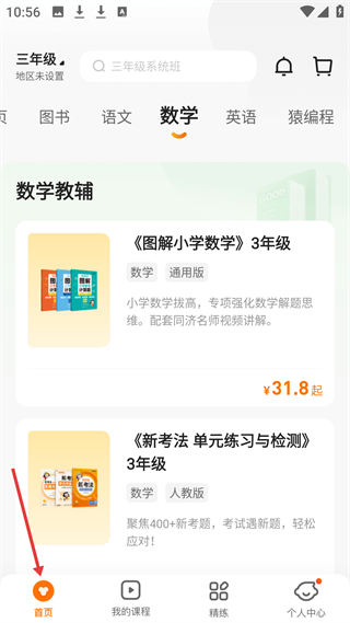 1、三年級數(shù)學板塊首頁展示圖解小學數(shù)學、新考法單元練習與檢測等教輔,助力數(shù)學學習提升。