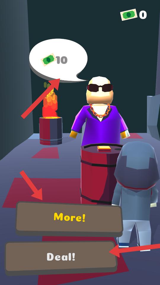 4、游戲里會遇到其他角色,對方會提出交易,比如給出10的金額,此時可以選擇More或者Deal,來推進游戲,獲取獎勵或繼續(xù)流程。