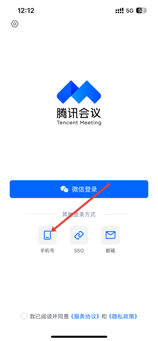 1、打開騰訊會議,進入登錄頁面,可選擇微信登錄,也能選擇手機號、SSO、郵箱等其他登錄方式,登錄前需勾選同意服務(wù)協(xié)議和隱私政策。