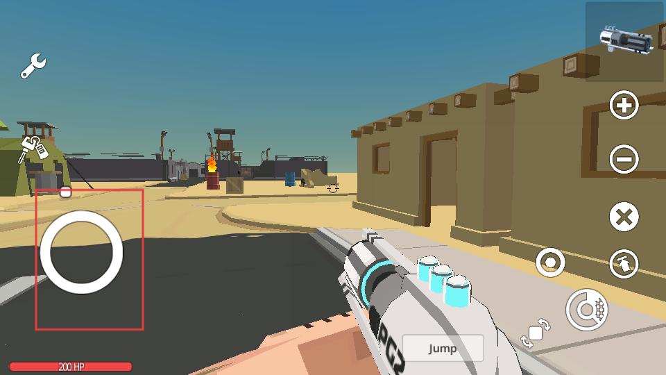 1、進(jìn)入游戲后,用左側(cè)虛擬搖桿控制角色移動(dòng),右側(cè)按鈕可進(jìn)行射擊等操作,在場(chǎng)景中探索,還能拾取武器裝備。