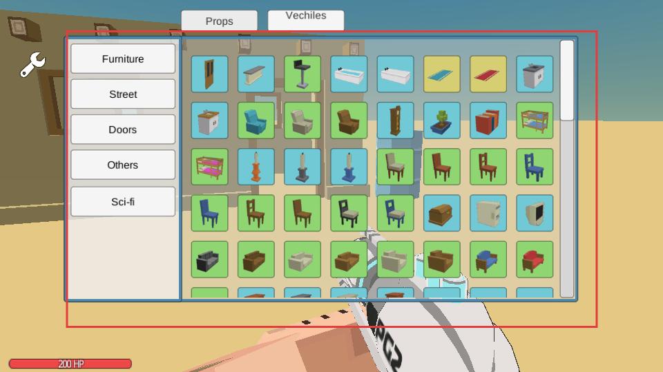 2、點(diǎn)擊道具欄,能選擇家具、街道設(shè)施等各類道具,將其放置在場(chǎng)景里打造屬于自己的獨(dú)特空間。
