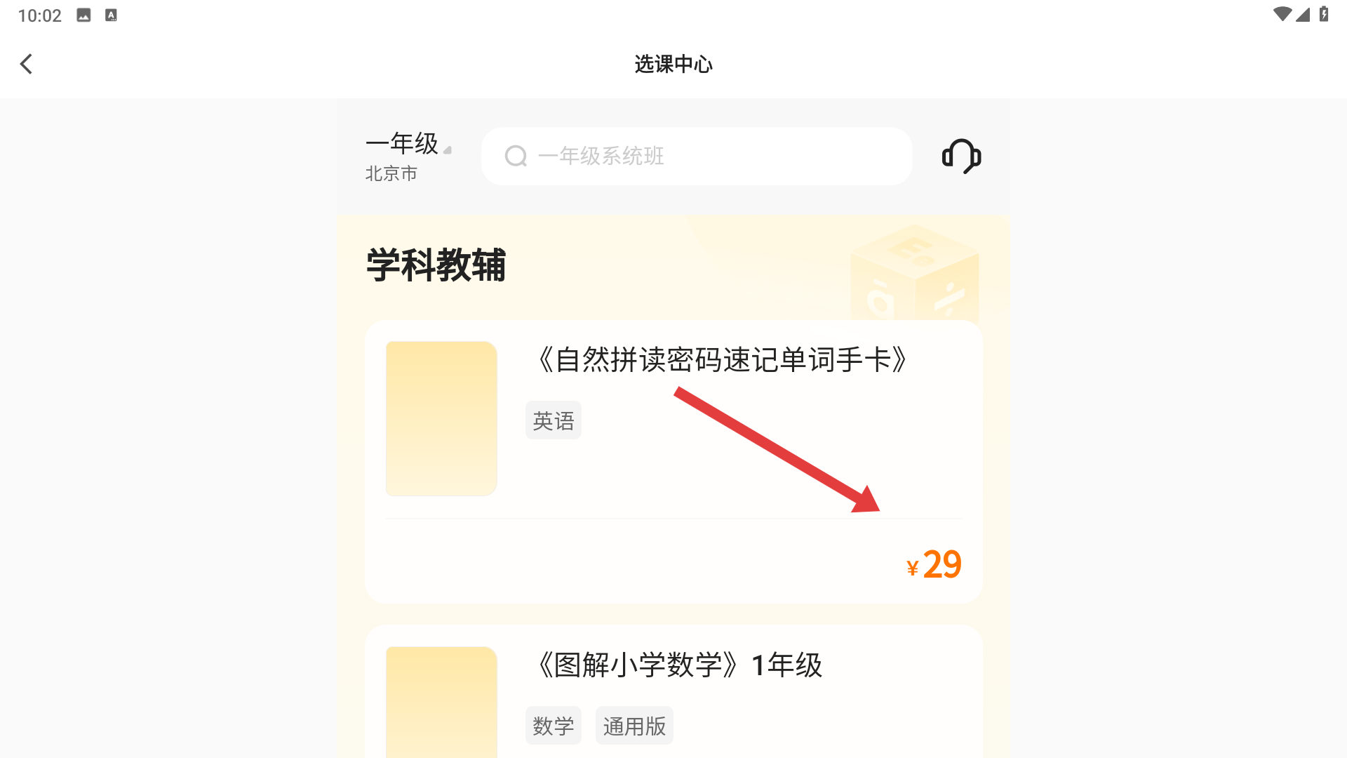 3、地區(qū)選擇完成后,學(xué)科教輔列表中找到自然拼讀密碼速記單詞手卡,點(diǎn)擊進(jìn)入該圖書(shū)的詳情界面。
