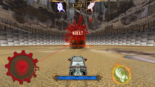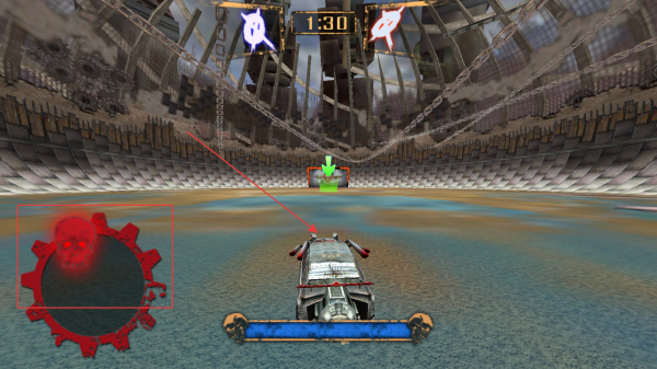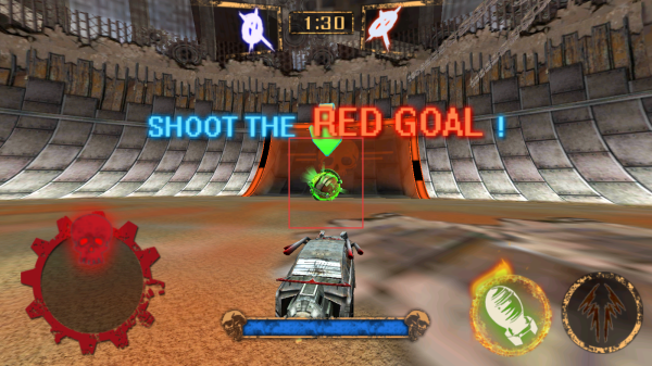 1、玩家下載游戲之后然后點擊進入游戲后,點擊屏幕左側帶有骷髏標志的虛擬搖桿,控制賽車在場地內(nèi)移動。