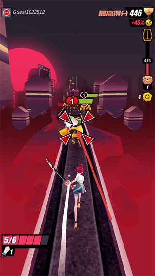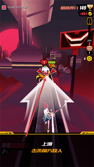 2、遇到前方敵人時,上滑屏幕擊殺敵人,獲取分?jǐn)?shù)和獎勵,利用不同的操作方式,應(yīng)對不同類型的敵人。
