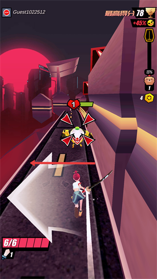 1、操控角色在路徑上移動,左右滑動躲避敵人攻擊,同時尋找機會攻擊敵人,提升得分,挑戰(zhàn)更高游戲成績。