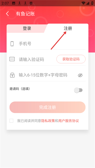 2、注冊板塊需填寫手機號、驗證碼、6、15位數(shù)字字母組合密碼及選填邀請碼,流程清晰,助力新用戶快速完成注冊。